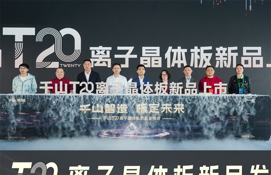 4月18日,中國(臨沂)全屋定制暨供應(yīng)鏈展覽會在臨沂國際會展中心正式開幕。在1號館“千山智造 板定未來”的舞臺上,千山板材T20離子晶體板及2025新品花色重磅發(fā)布,以新產(chǎn)品、新工藝、新花色,為終端提供更有價值空間、更具競爭力的高端產(chǎn)品,助力消費(fèi)者開啟高顏美家新體驗(yàn)!千山集團(tuán)副總經(jīng)理王松、南京林業(yè)大學(xué)材料科學(xué)與