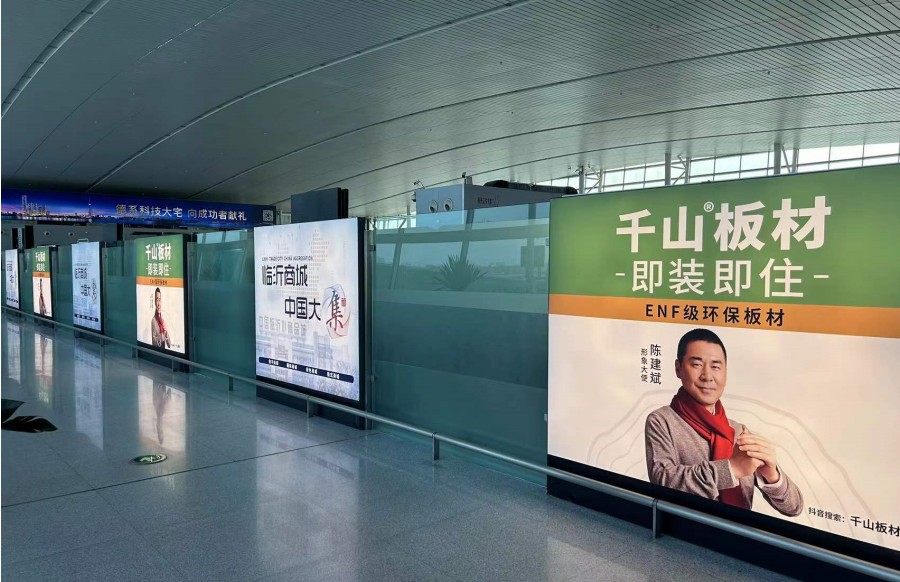 機場廣告以“千山板材,即裝即住”為主題,進行高頻次持續(xù)曝光,形成強大的品牌效應,使得千山品牌理念,以及品牌形象深入人心。