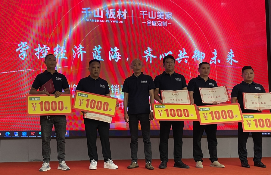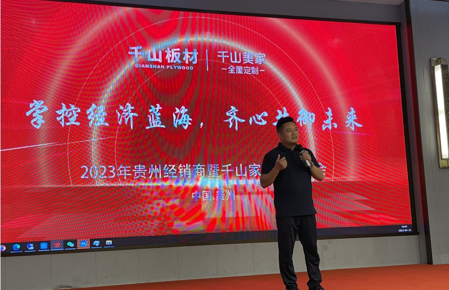 7月31日,千山2023年貴州經銷商暨千山家具板招商會在貴陽隆重啟幕。本次大會以“掌控經濟藍海  齊心共御未來”為主題,進行產品培訓、優秀經銷商頒獎、政策宣講等多項活動。100余名貴州經銷商、家具廠大咖齊聚,聚焦家具板發展趨勢,共商合作。
