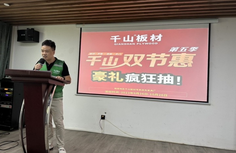 2023年9月26日,千山板材第五屆雙節惠暨千山板材新品發布會在江西省贛州市火爆開啟!活動時間長達一個月,工廠直供,產品質量優異,價格實打實優惠!本次活動不僅為消費者提供了勁爆的優惠政策,更是奉上了一系列驚喜豪禮與真摯服務。