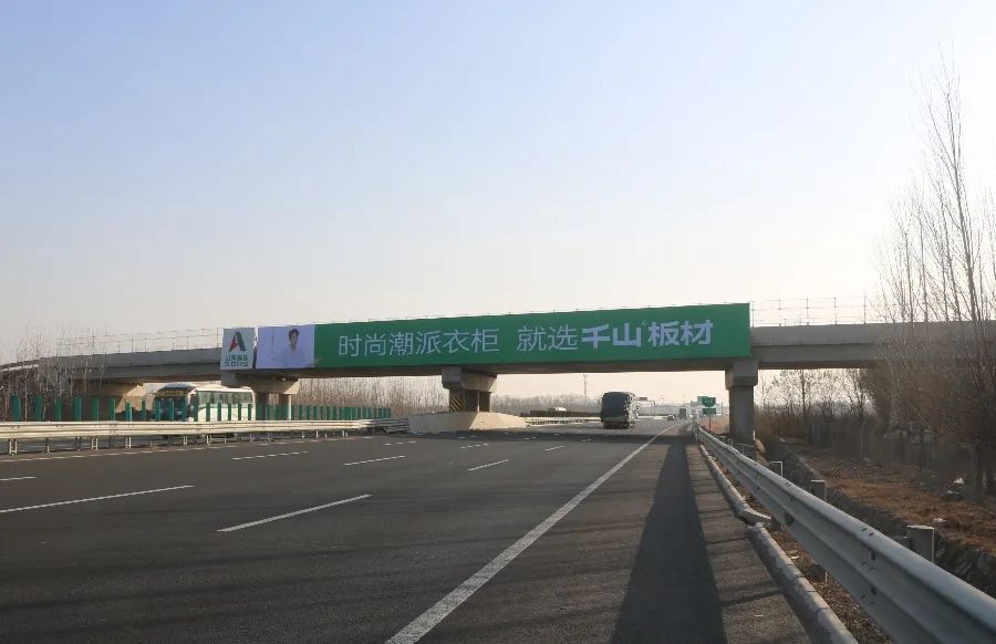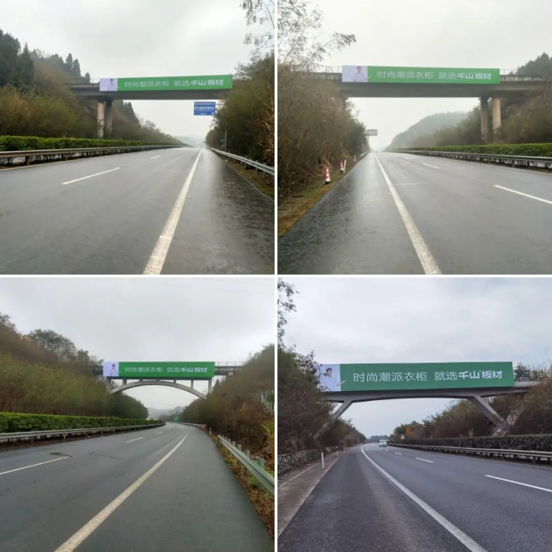 本次高速廣告形式依舊涵蓋跨線橋、單立柱,以千山2.0品牌色調綠色為主色調,展示了全新品牌代言人李晨以及全新品牌LOGO。廣告畫面鮮艷、美觀、簡潔,進一步將“時尚潮派衣柜 就選千山板材”的品牌主張傳遞給更多的消費者。