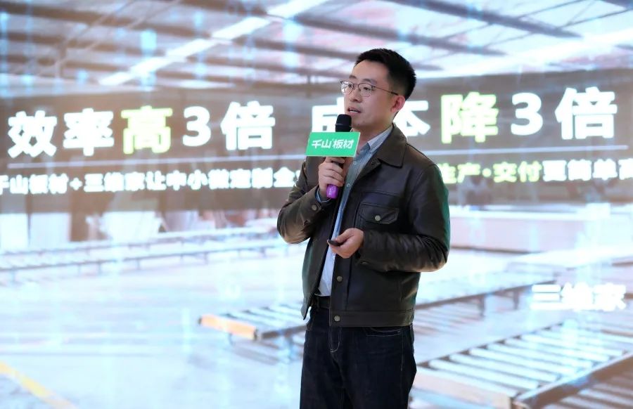 三維家山東大區(qū)經(jīng)理李清帥詳細(xì)介紹了三維家前后端一體化的貫通。李經(jīng)理分享到,三維家一體化實現(xiàn)銷售前端與生產(chǎn)后端的數(shù)字化、高效化生產(chǎn),三維家與千山板材的深度合作,必將助力終端,實現(xiàn)共贏。
