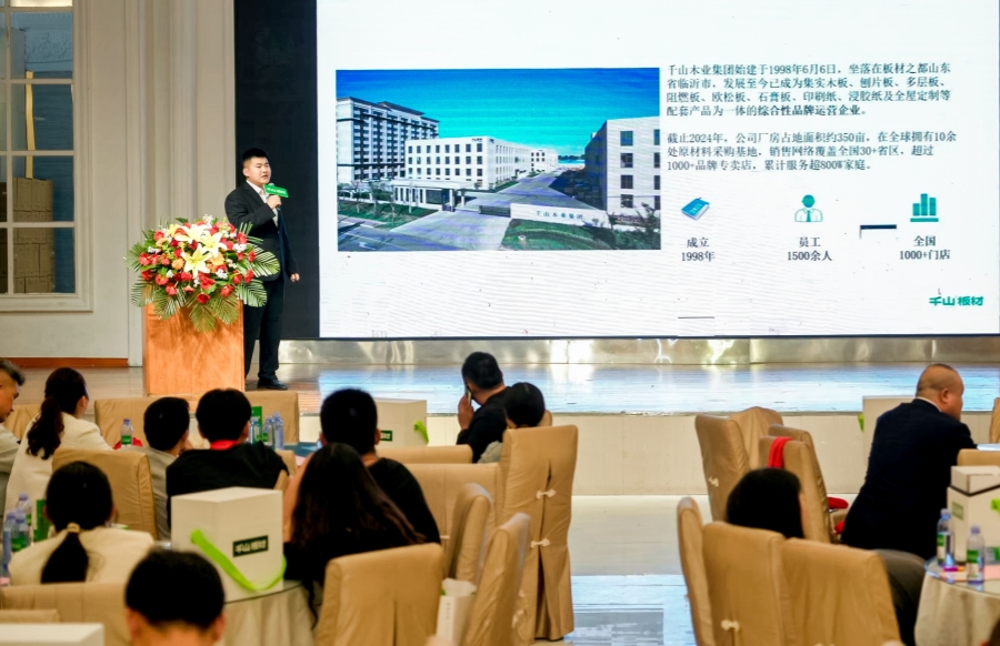 千山板材銷售部總監董向陽上臺致辭。董總表示,千山堅定品牌高端化發展方向,堅定產品研發投入,堅定營銷渠道精進!站在全面發展的新階段,千山已做好充足準備,和伙伴們一起迎接挑戰,合作共贏。