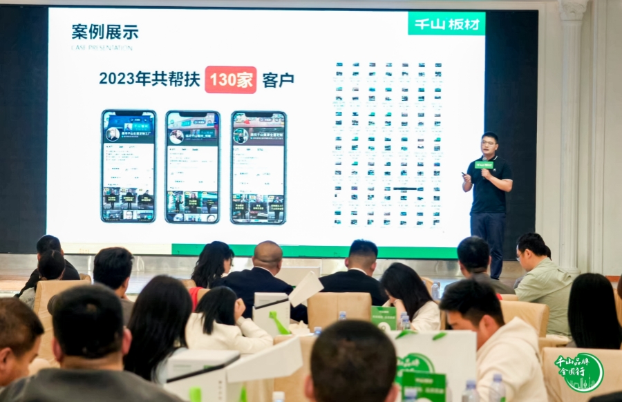 千山板材大區經理王殿忠為大家分享了《新媒體運營獲客》,向大家展示了千山板材優秀經銷商的短視頻賬號實例,對標簽內容進行剖析,鼓勵大家勇于提升新媒體運營能力,挖掘線上客戶,助力終端銷售。