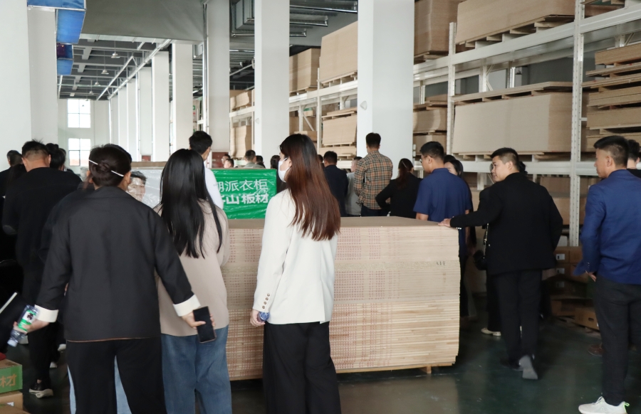 隨后,大家來到高標準倉儲成品庫參觀。千山板材倉儲成品庫配備了專業的管理人員,內部整潔、寬敞有序,每一處都體現了千山對于產品儲存、管理的嚴格標準與精細要求。