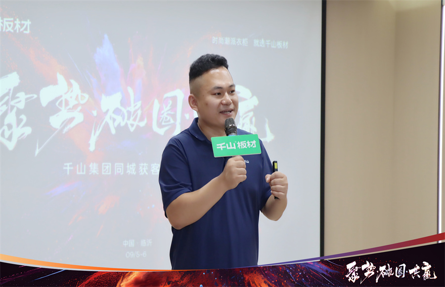 打好流量牌 把握線上渠道 將同城獲客作為重要抓手打造IP 在開(kāi)營(yíng)致辭中,千山板材山東倉(cāng)總經(jīng)理?xiàng)钚闵绞紫葘?duì)來(lái)到總部學(xué)習(xí)的伙伴們表示熱烈歡迎!楊總分享到,面對(duì)劣幣驅(qū)逐良幣的激烈競(jìng)爭(zhēng)環(huán)境,破局向上、流量打造勢(shì)在必行。如今是短視頻和直播時(shí)代,大家要提高自身專業(yè)度,布局線上渠道,驅(qū)動(dòng)增長(zhǎng)。也希望家人們把握學(xué)習(xí)好時(shí)機(jī),滿載而歸。