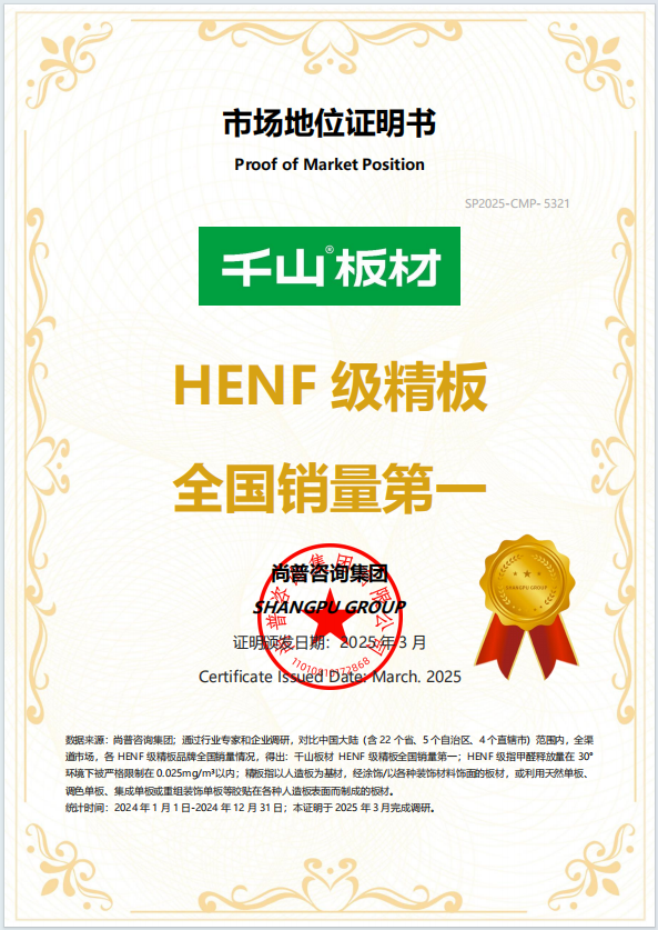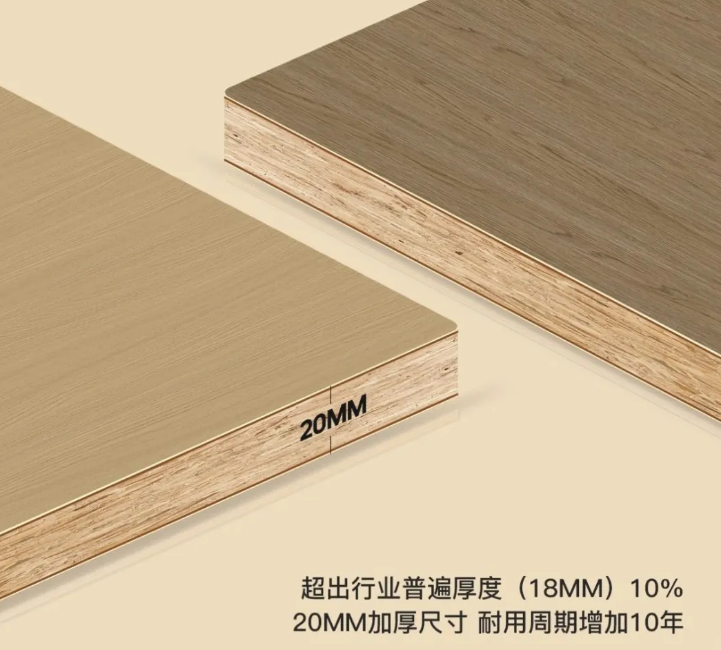 T20離子晶體板:是表面覆有離子晶體層,板材承重比常規18mm提升50%,變形度降低50%,耐磨性能提升3倍以上的20mm高端飾面板材。T20離子晶體板是千山板材推出的高端飾面板材,由千山集團與南京林業大學材料科學與工程學院聯合研發,于2025年4月18日在臨沂全屋定制展首次發布,定價1099元/㎡,旨在為消費