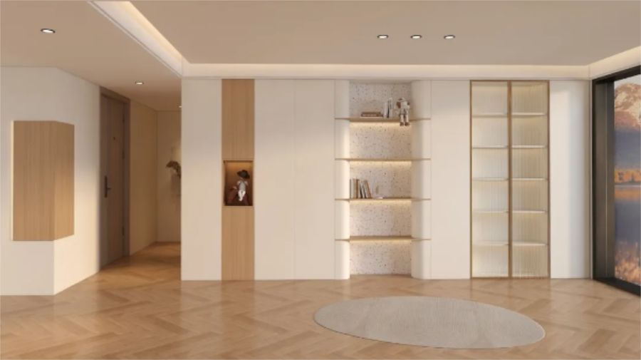 在推崇“高效極簡”生活理念的當(dāng)下,門墻柜一體化作為家居領(lǐng)域的一次革新,順應(yīng)了人們對生活品質(zhì)與空間美學(xué)的追求,以突破格局界限、建立統(tǒng)一的空間視覺為手法,創(chuàng)造整體性和功能性更佳的居住體驗(yàn)。