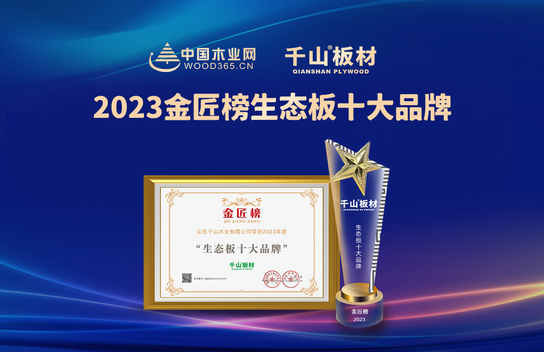 2023年7月1日,由中國木業(yè)網(wǎng)舉辦的2023中國板材產(chǎn)業(yè)峰會暨金匠榜頒獎典禮在杭州隆重舉行,行業(yè)專家、優(yōu)秀獲獎企業(yè)齊聚盛宴,共同見證了生態(tài)板十大品牌、行業(yè)影響力十大品牌等各品類十大品牌的榮耀加冕。在此次評選中,千山板材實力登榜,憑借優(yōu)異的產(chǎn)品品質(zhì)、強大的品牌實力、良好的服務(wù)口碑,再次斬獲金匠榜2023年度“生